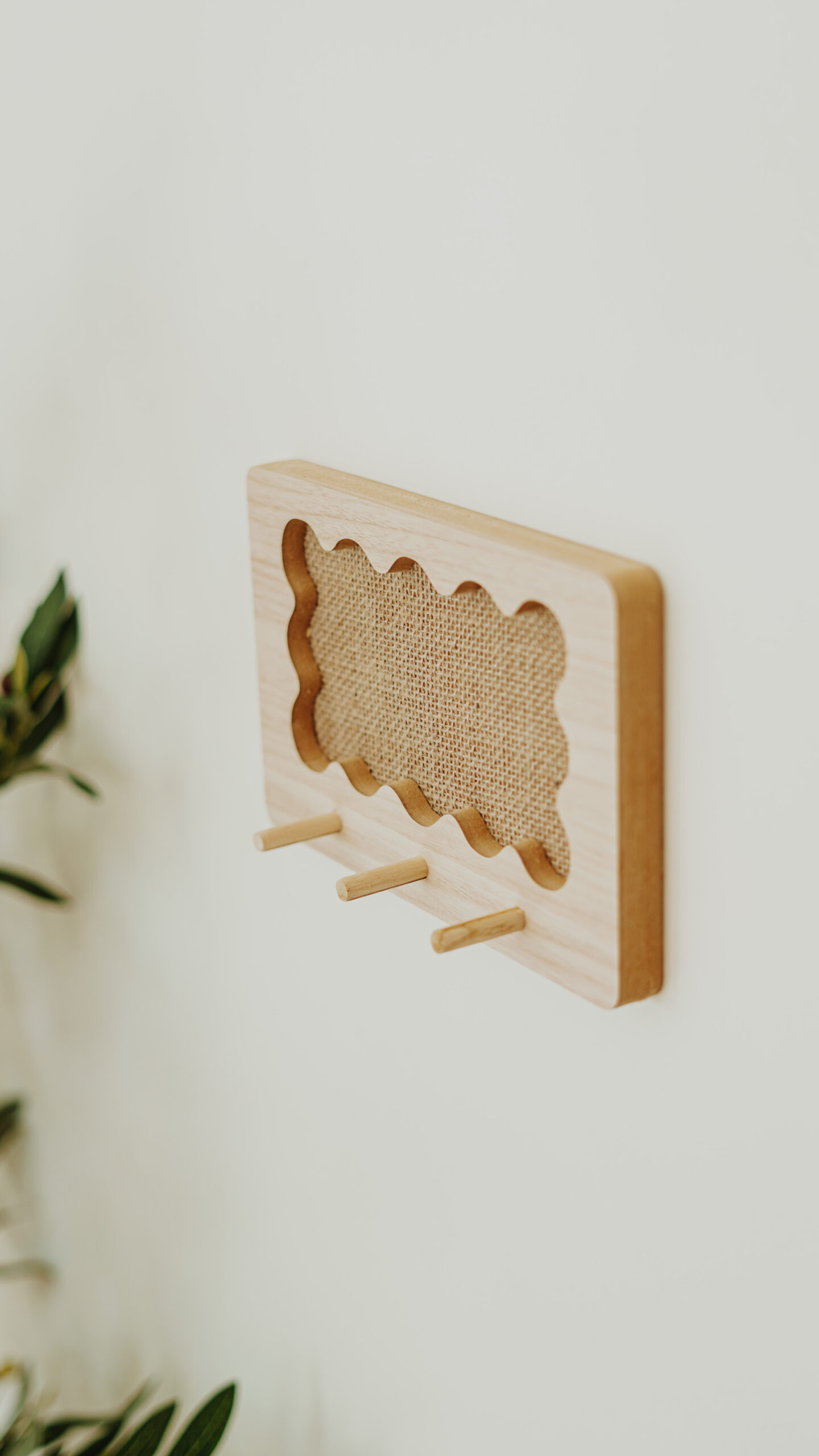 Portallave con 3 colgadores de madera natural