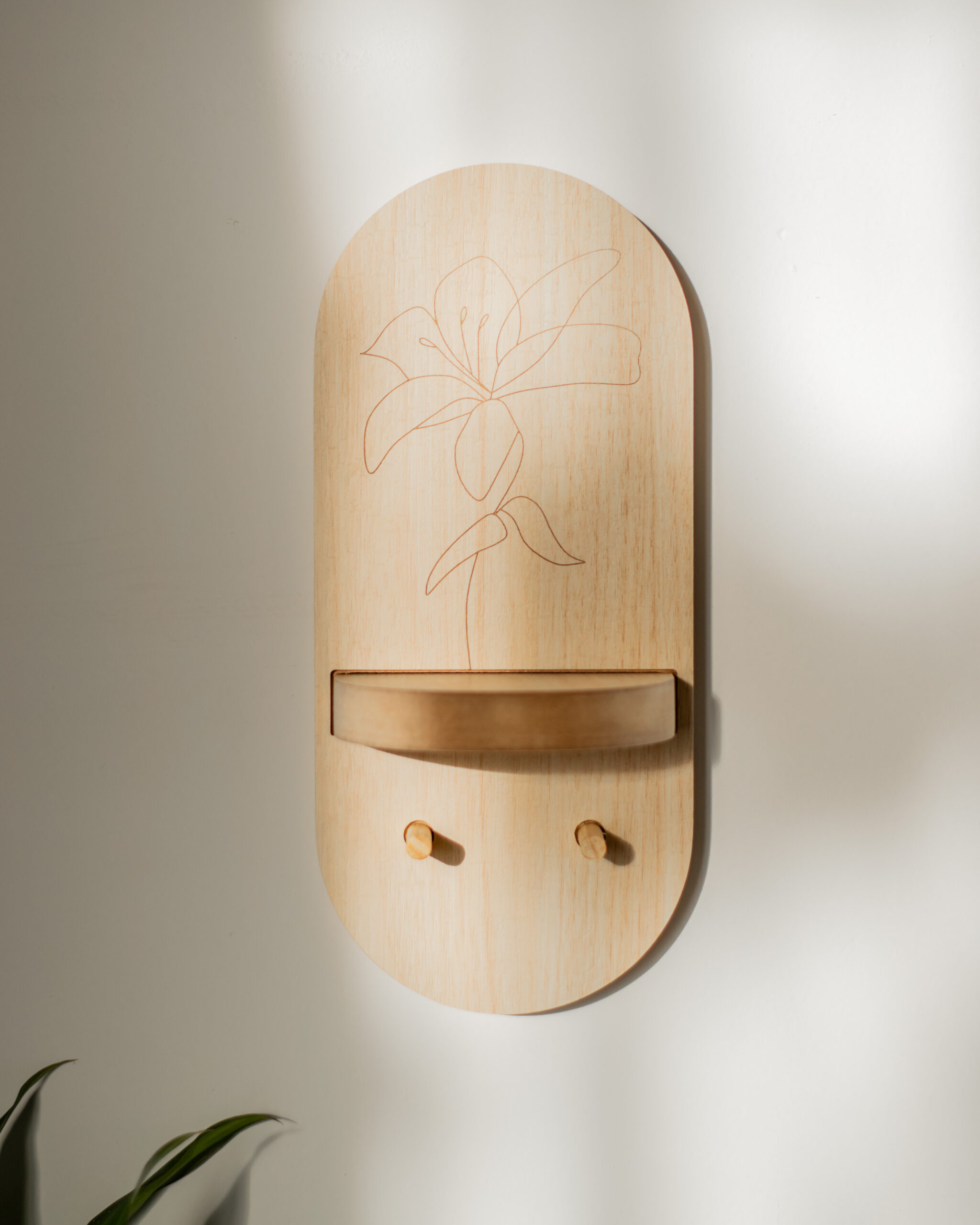Portallave con 2 colgadores de madera